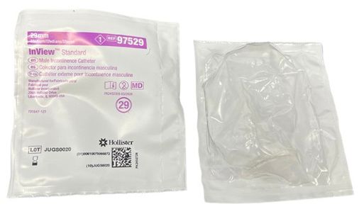 InView Standard Self Adhesive Male Catheter.Silicone, self-adhering external male catheter. Latex-free to improve breathability and risk ofallergic reaction. Designed for maximum wear time and the clear silicone allows for visual inspection of skin.